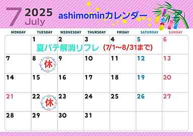 7月のashimominのイベント及び定休日です。